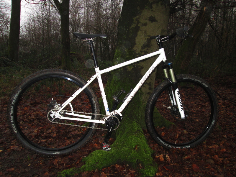 Baumstümpfe und Schlammpassagen ist. Das 29er wirklich spürbar besser über Hindernisse rollen. Mein Eindruck ist, das dies nicht nur ein Werbeversprechen der MTB Industrie ist.  Was ggf. etwas fehlt ist die Wendigkeit und die Laufräder sind größebedingt etwas schwerer. Aber bei den Laufradgrößen bin ich nicht obejetiv und etwas 26″ verliebt. Was bedauerlich ist, ist das Patria die MTB Trail’s erst nach meinem MTB-Kauf auf den Markt gebracht hat sonst hätte ich mich gegen ein Fully und für diese schöne Hardtail entschieden. Ob es dann ein 29er geworden wäre oder doch ein 26″ wäre dann vom Einsatzweck abhängig gewesen. Dann aber wahrscheinlich mit einer Rohloff.   Und was ist mit den Muttermalen? Nun wenn man bei so einem Wetter ohne Schutzbleche fährt bleiben die typischen Schlammspritzer/Muttermale ja nicht aus. Zum Glück braucht es ja nur einen Waschlappen um sie wieder zu entfernen und keinen Dermatologen ;-).